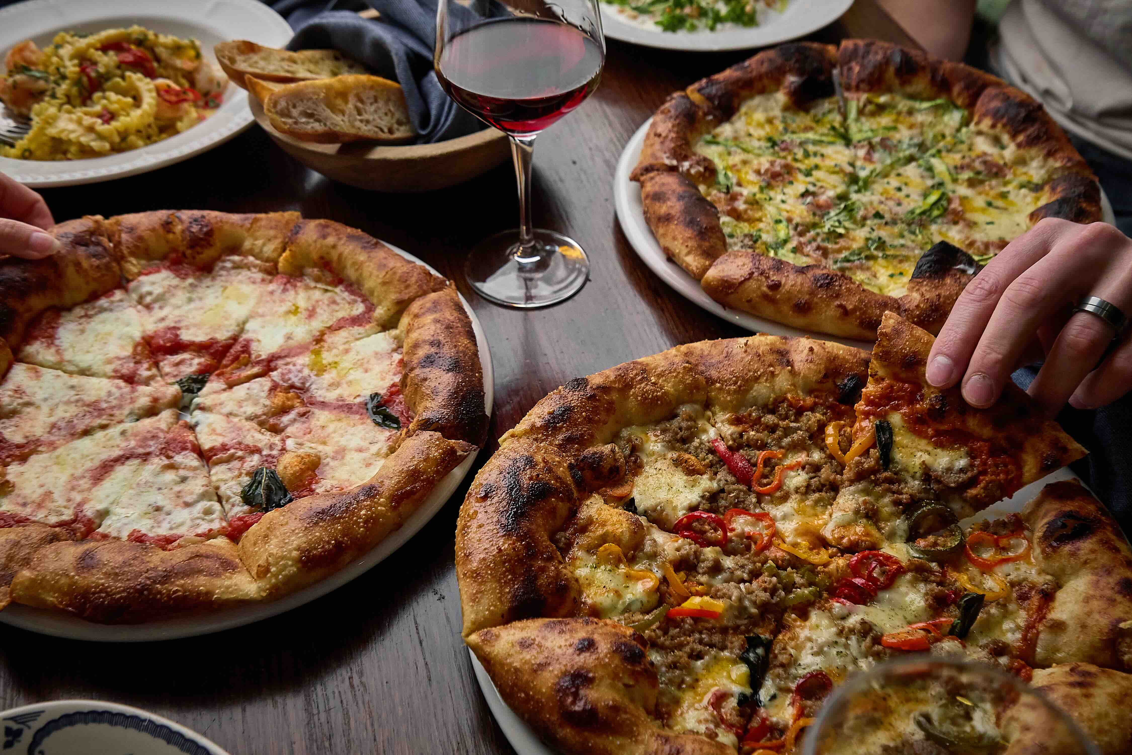 choose from Margherita, San Daniele Prosciutto, sopressata, fennel sausage, mushroom, and carbonara.